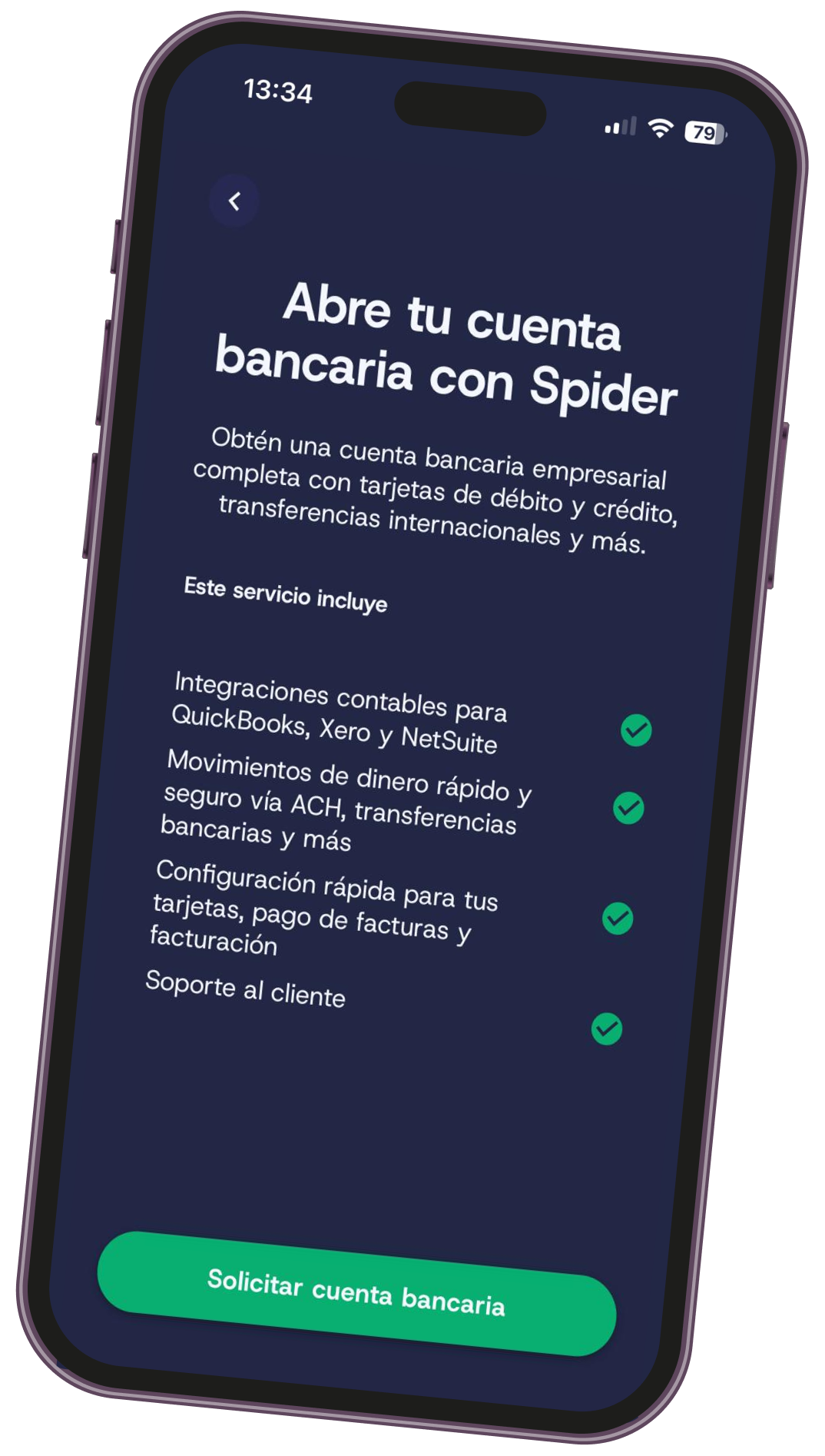 Desde la app Spider Connect, ingresando al Marketplace → Cuenta bancaria y siguiendo los pasos de onboarding.